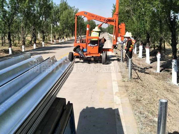 圖為安裝立柱,立柱采用預(yù)埋式,高1.2m地面高度為80cm,波形護欄板厚度為2.5厚,四米一柱的安裝方式。